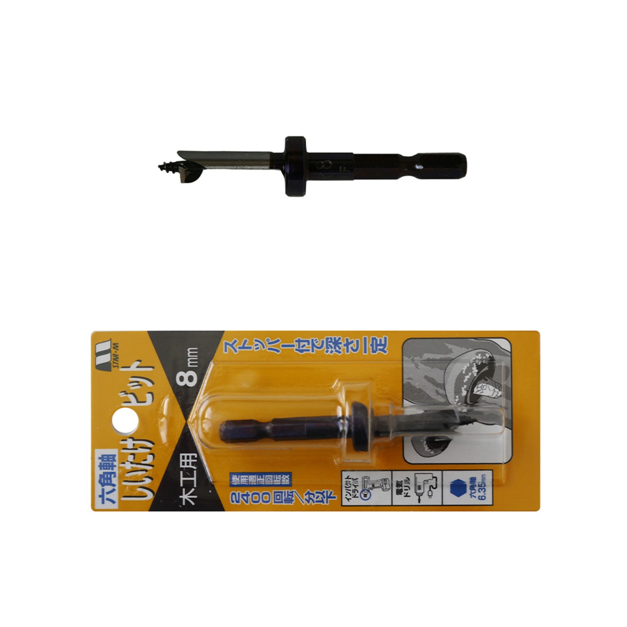 スターエム/STAR-M 41X-080 六角軸しいたけビット ストッパー付 8㎜
