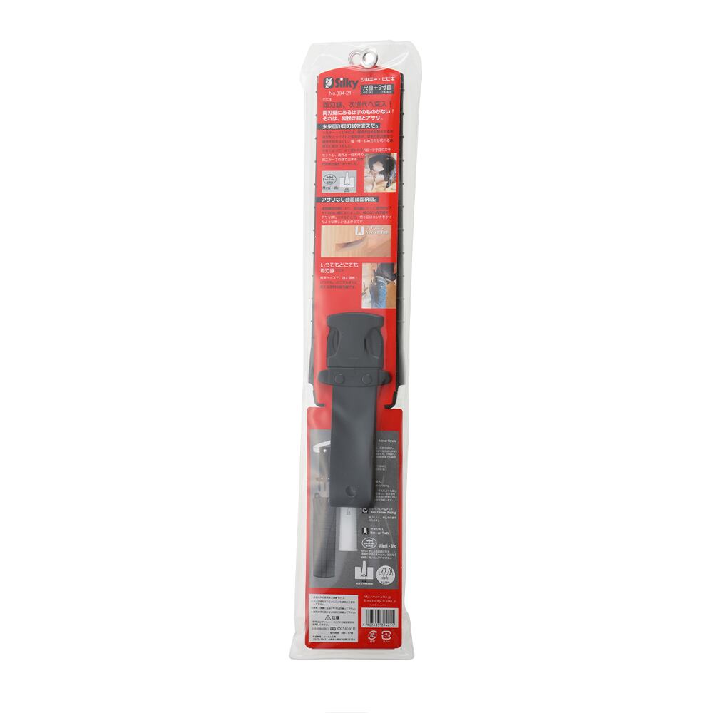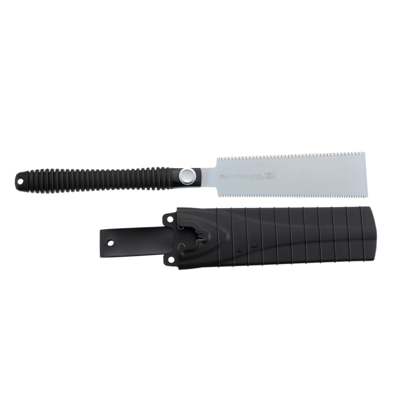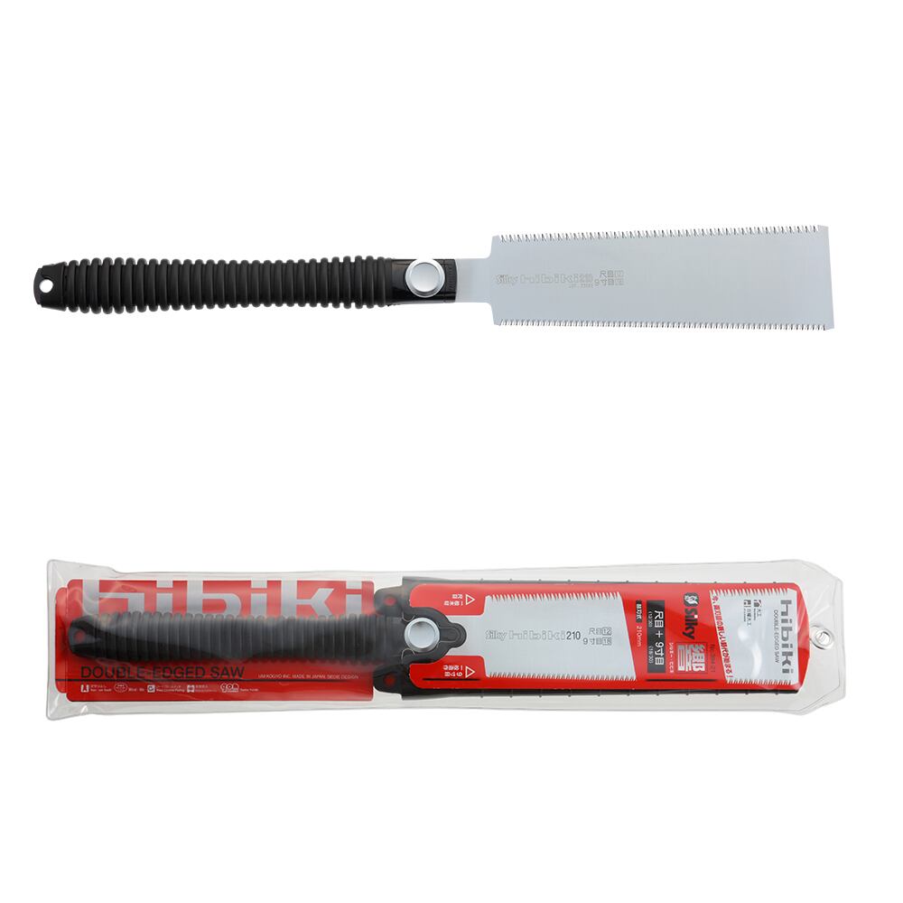 ・一般的な両刃鋸の片側にある縦挽き刃の代わりに、切断対象の繊維方向を問わずに切れる未来目を備えた横挽き刃を採用しました。