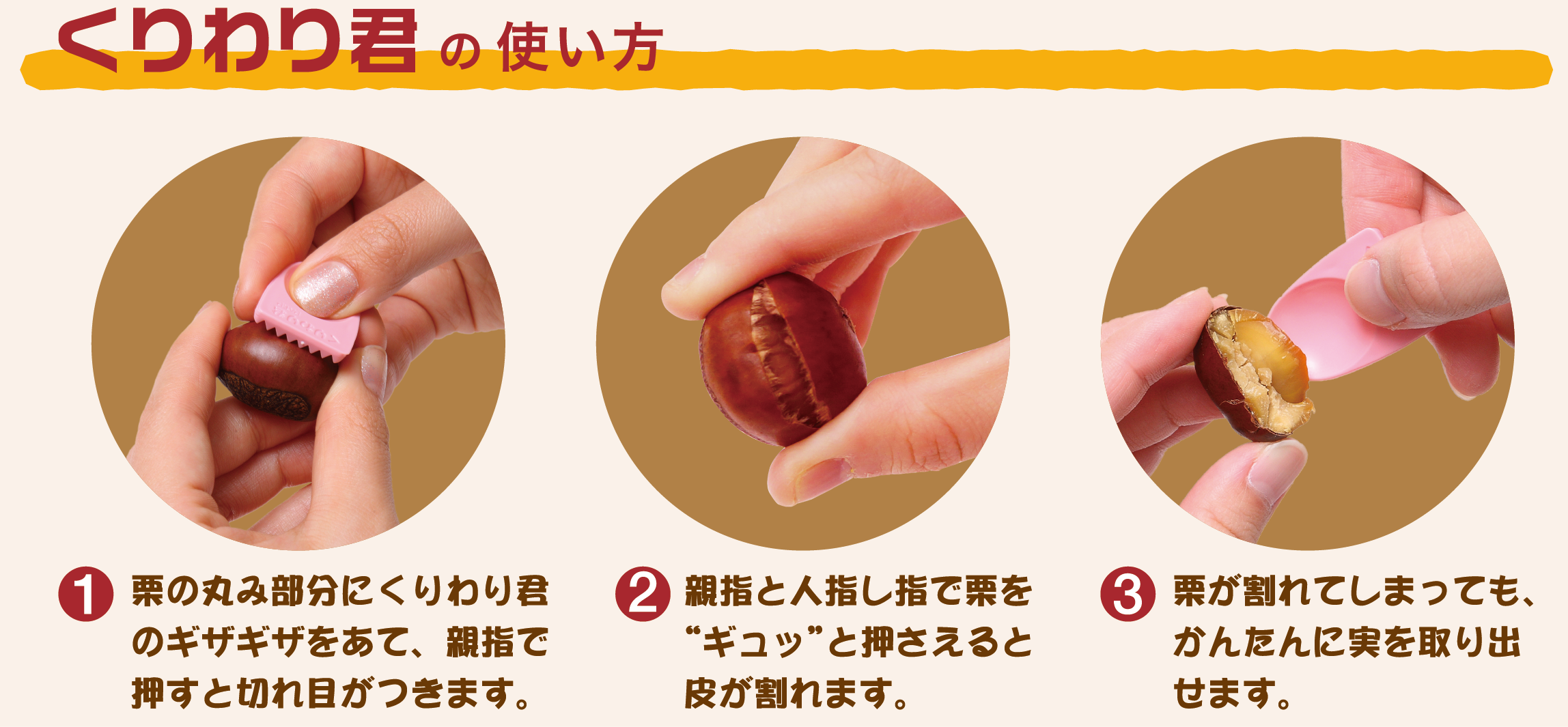 固い甘栗の皮がラクにむけ、パクパクと食べられます!